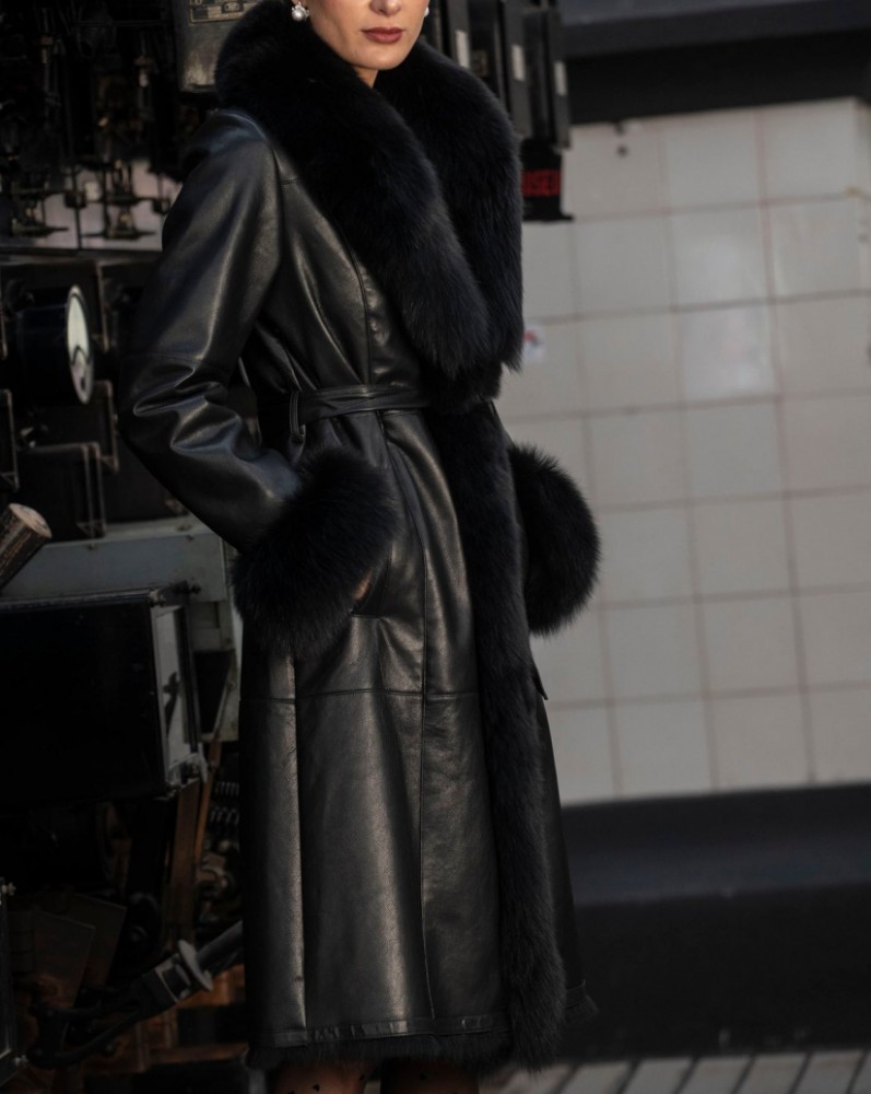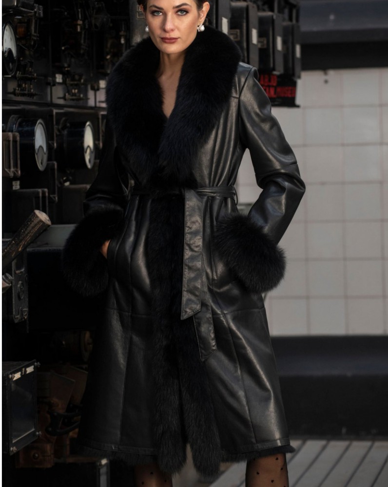 Model s odnímateľnou kožušinou na golieri a rukávoch